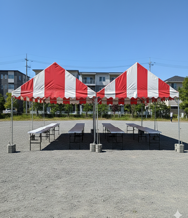 お祭り、催し物、運動会や野外イベントで大活躍、集会用テントのご紹介です。お届けから回収までワンストップで気軽にレンタル。
